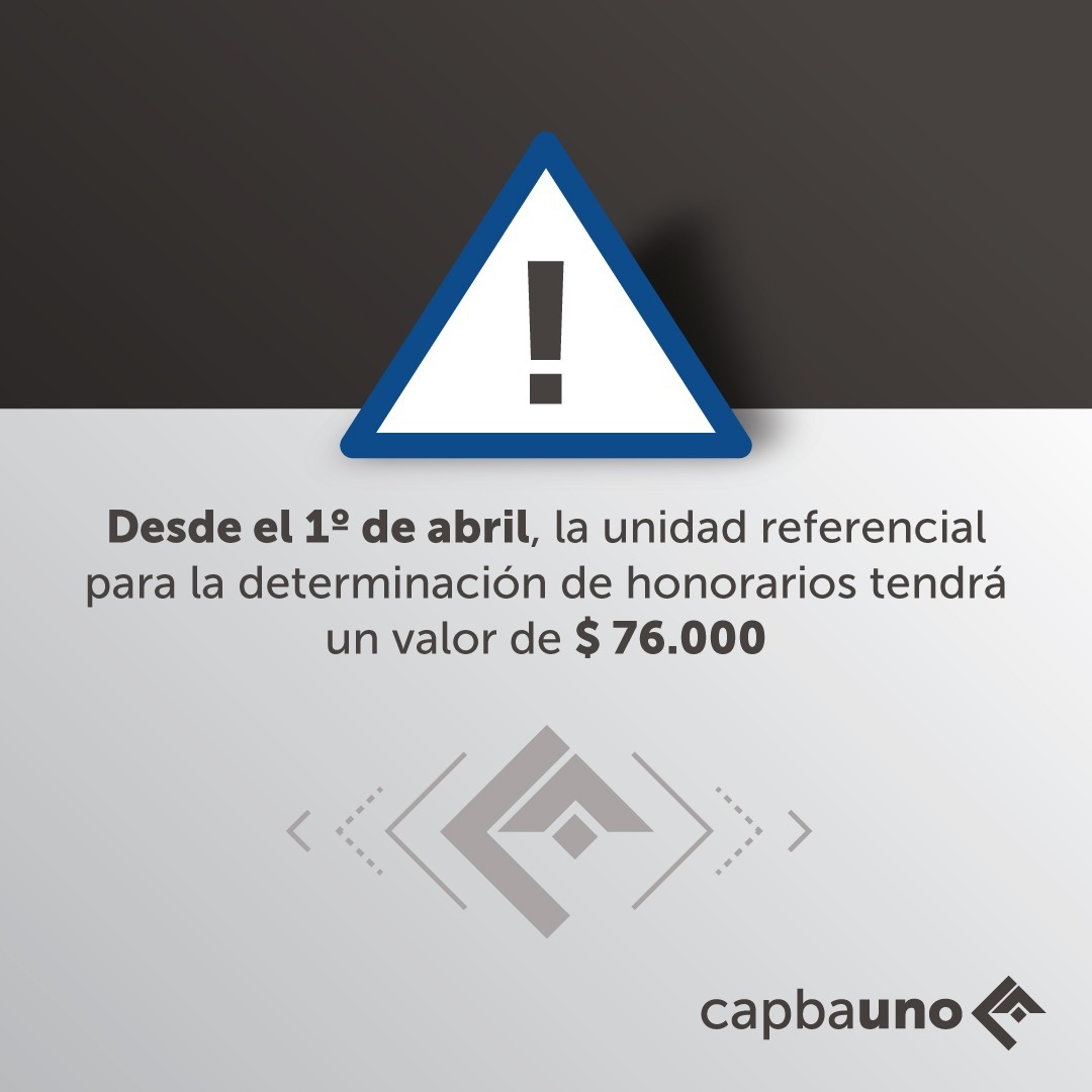 Conforme a lo acordado entre los colegios integrantes de la CAAITBA -Caja de Previsión Social para Agrimensores, Arquitectos, Ingenieros y Técnicos de la Pcia. De Bs. As.- se estableció que desde el 1 de abril del corriente entrará en valor el nuevo monto de aplicación para la UNIDAD REFERENCIAL, quedando