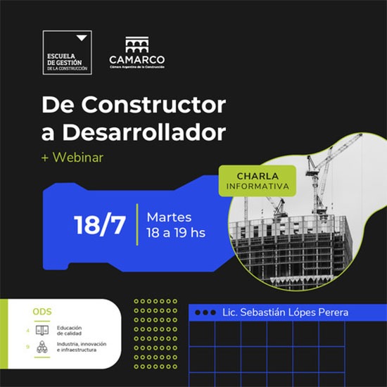 La Escuela de Gestión de la Construcción de la Cámara Argentina de la Construcción -CAMARCO-, presenta una charla informativa dirigida a pequeños y medianos empresarios constructores, que tiene por objetivo describir las principales metodologías de investigación de mercado que se utilizan para evaluar desarrollos de viviendas multifamiliares.